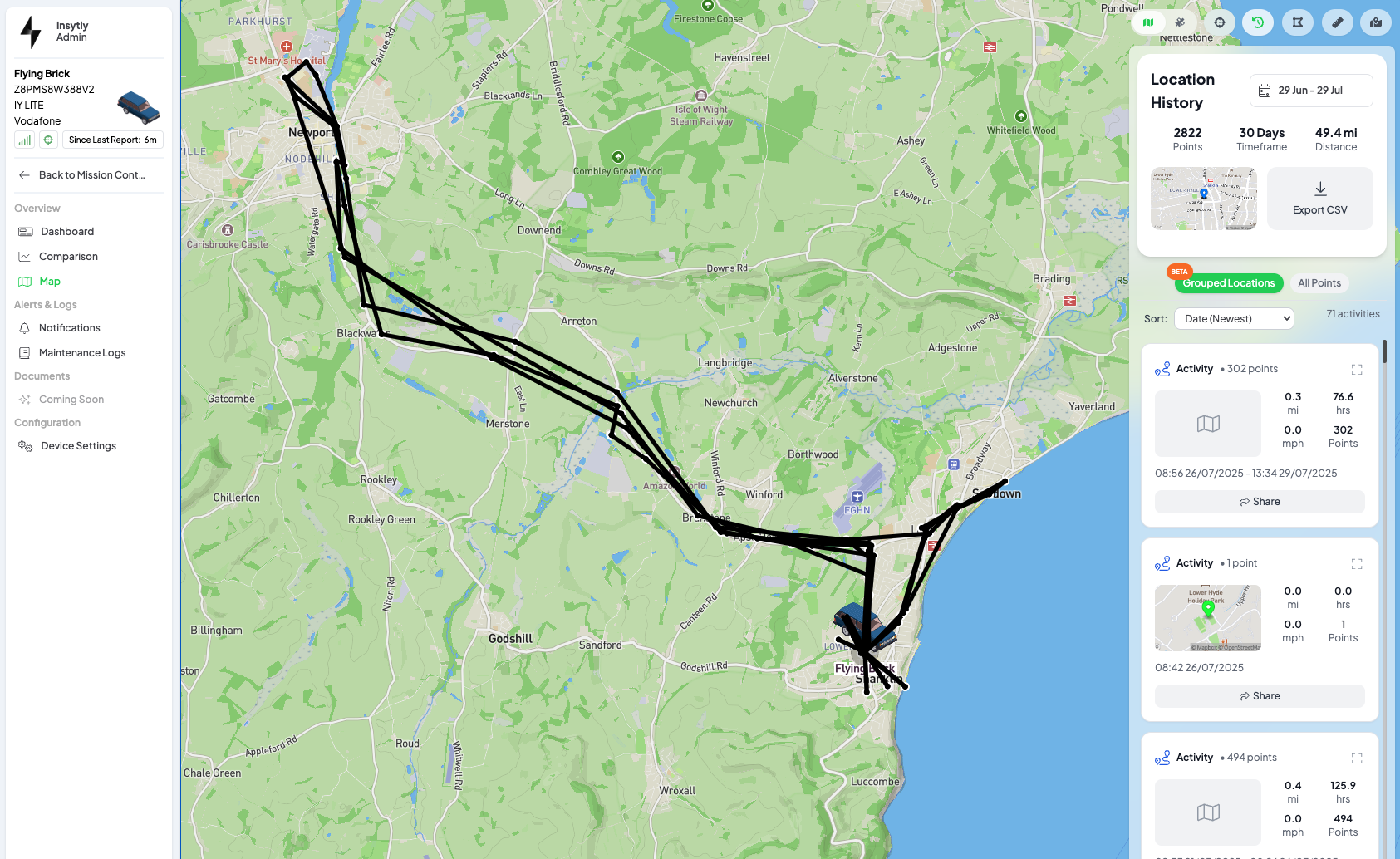 Industry standard GPS geo positioning with external GPS modules and cloud based movement algorythms.
